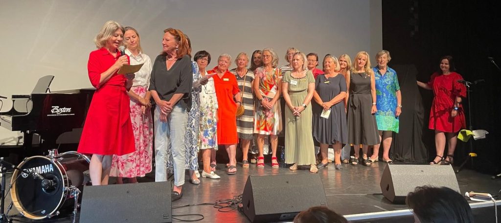 Mit dem Singen der soroptimistischen Hymne schloss der erste Teil und die Pause genossen alle Teilnehmer:Innen der Feier bei köstlichem Essen und Getränken im Garten der alten Gerberei in St. Johann. Anschließend sorgten die Schick-Sisters für Stimmung und Begeisterung und brachten alle Anwesenden richtig in Schwung; auch Leichtigkeit hatte Platz an diesem Abend.